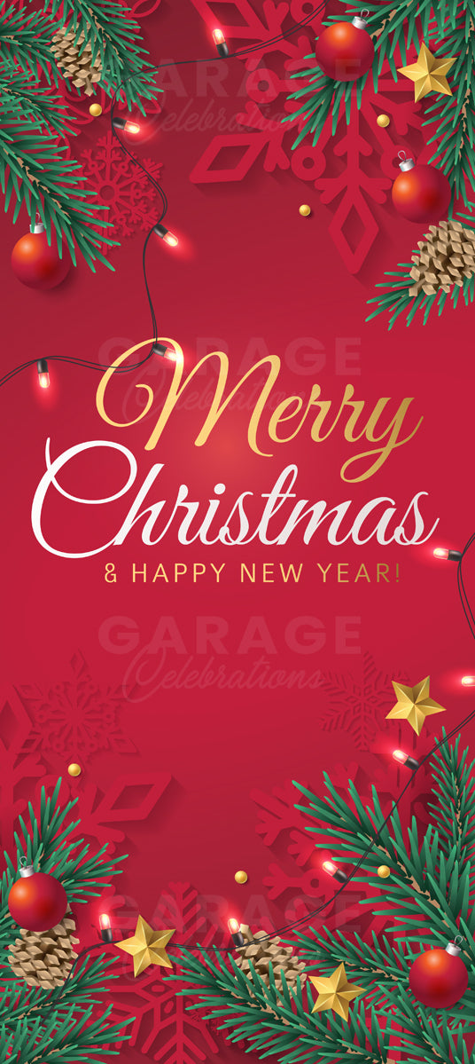 Enjoy this classic Christmas banner. Let holiday tree trimmings welcome guests to your home. This beautiful cover is both sophisticated and heartwarming, the perfect complement to your home's décor. This cover is one of our most popular!